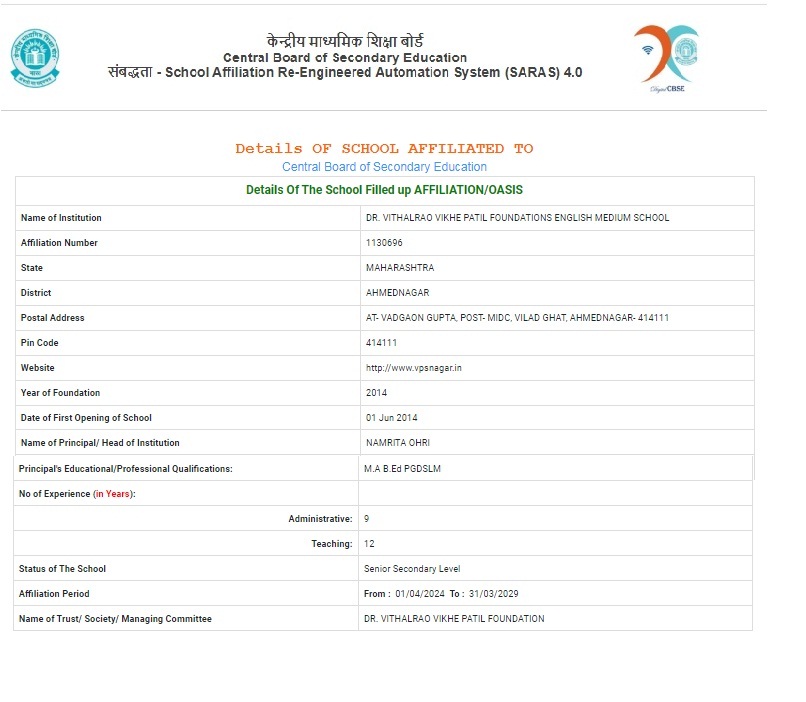 Welcome to Dr. Vithalrao Vikhe Patil Foundation's English Medium School. Senior Secondary School (Class Nursery to class XII-Science)
